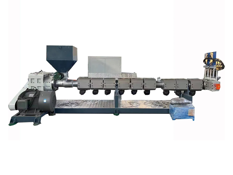該機(jī)組針對PET礦泉水瓶塑料的特殊性,含聚碳,溫差要求小。采用特殊加熱圈,控制溫度穩(wěn)定以及PET專用換網(wǎng)器,已達(dá)到PET顆粒的穩(wěn)定輸出。